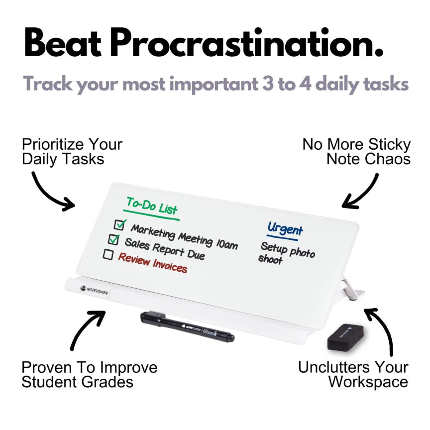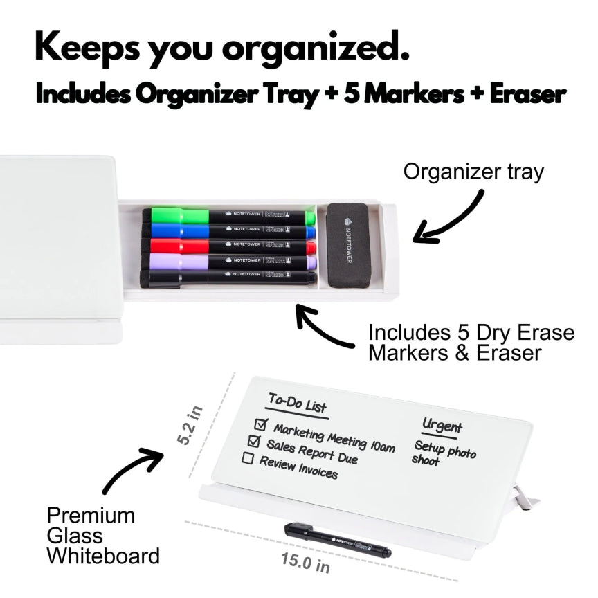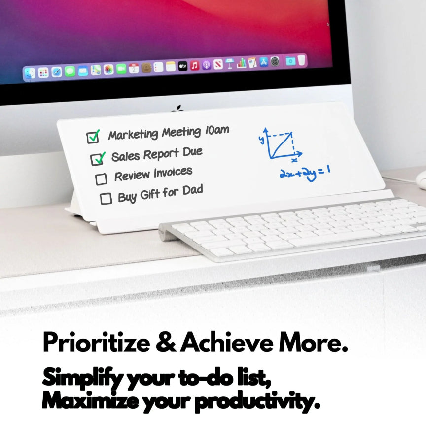 The NeatGlass surface measures a spacious 16" (40 cm) x 7" (18 cm), giving you plenty of room for daily notes and reminders. Designed to fit perfectly between your keyboard and monitor, or positioned neatly beside your keyboard or laptop.