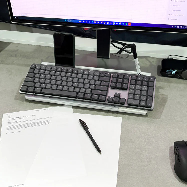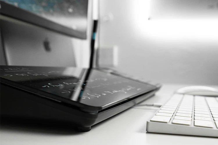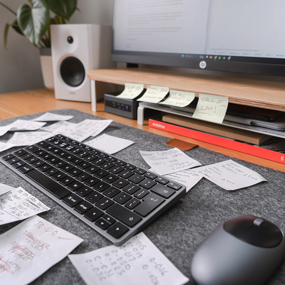 Free up valuable desk space by sliding your keyboard onto NeatGlass when it’s not in use. Perfect for clearing room to jot down notes or review documents without clutter in front of you.