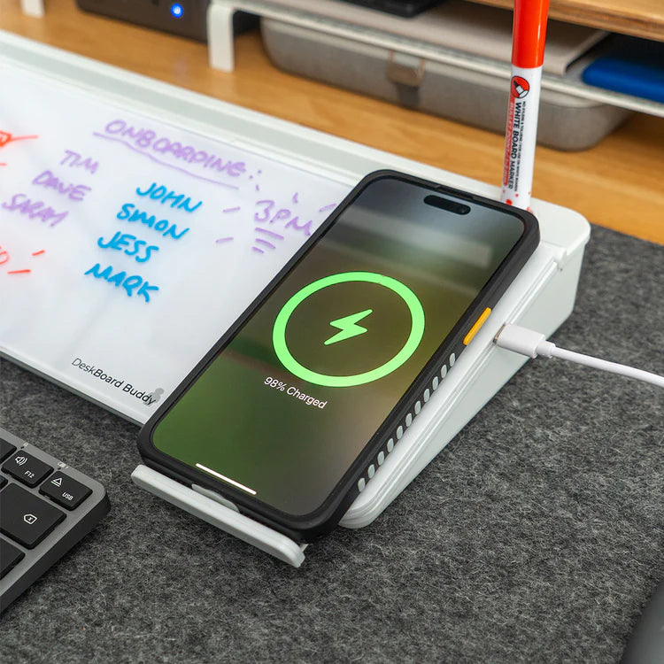 Need to charge your phone while you work? Add the optional NeatGlass wireless charger! It fits any phone from 5.5"–7.5" with its adjustable foot stand and comes with a matching 5 ft USB-C to USB-C cable right in the box.