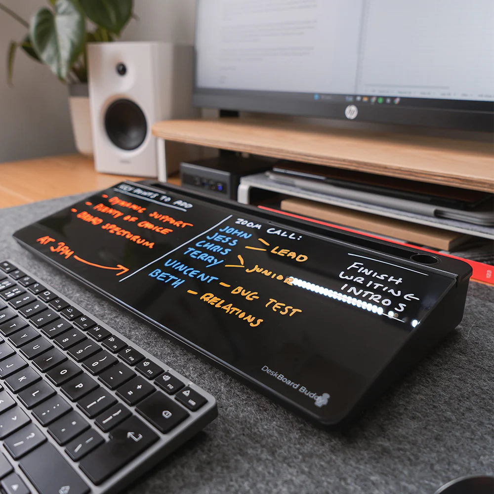 Say goodbye to clutter with NeatGlass. Jot down notes, reminders, and to-dos directly on the sleek glass surface, then erase them when you’re done. No more messy sticky notes, no more wasted paper, just a clean, modern desk that keeps you focused and productive.
