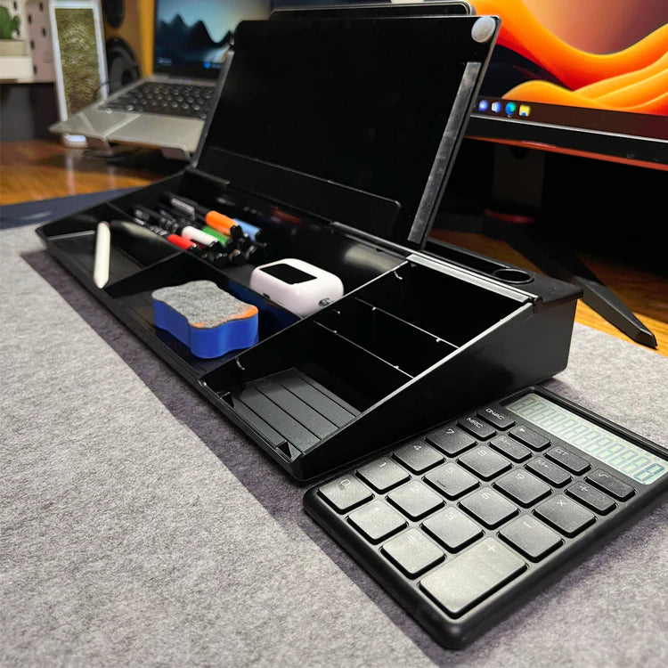Organize your desk space with ease. Store your pens, markers, highlighters, rulers, clips, and other essentials neatly inside NeatGlass’s hidden storage compartment, keeping your workspace clean, minimal, and distraction-free.